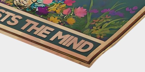 Véritable toile en lin et coton, prolongée par des bordures artistiques uniques, créant un effet immersif digne des toiles de galerie.