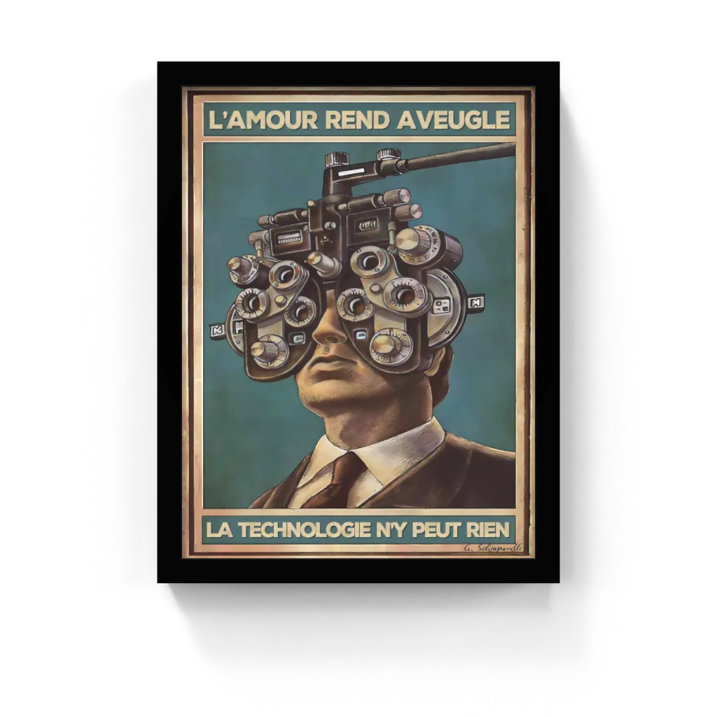 Este lienzo subraya lapotenciairresistible del amor quetrasciendetodos los avances tecnológicos. El personaje, mirando a través de un foróptero, simboliza el intento fútil de utilizar cualquier herramienta o tecnología para controlar o clarificar sus emociones.La fuerza del Amores tan poderosa que puededejar ciegoincluso a la persona más perspicaz. Es unrecordatorio conmovedorde que el Amor, en toda su esplendor y complejidad, no puede ser comprendido ni controlado por ninguna herramienta externa.