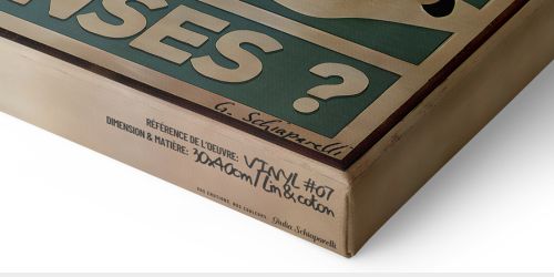 Véritable toile en lin et coton, prolongée par des bordures artistiques uniques, créant un effet immersif digne des toiles de galerie.