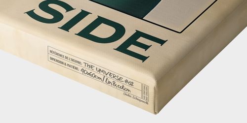 Véritable toile en lin et coton, prolongée par des bordures artistiques uniques, créant un effet immersif digne des toiles de galerie.