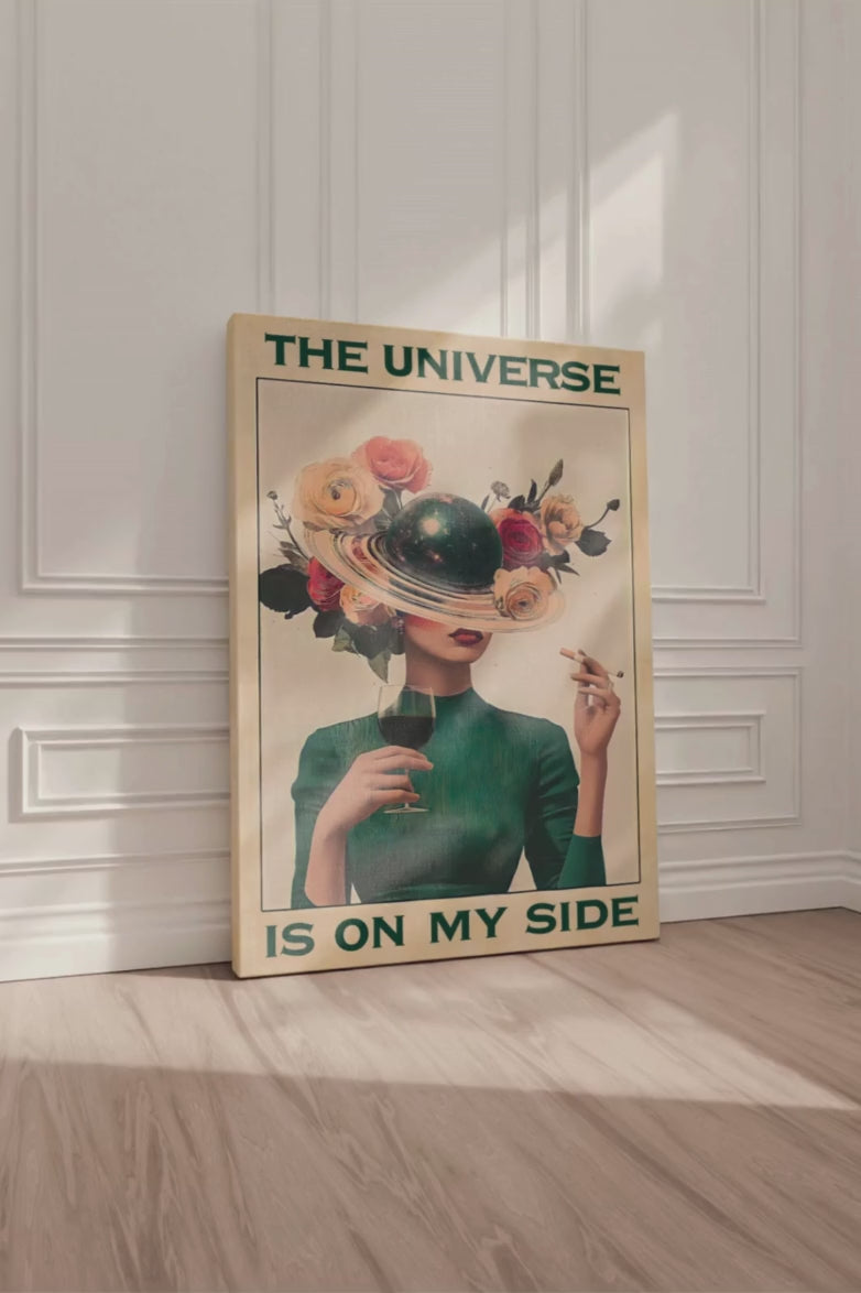 Cette citation, 'L’univers est de mon côté', nous rappelle de faire confiance au chemin que la vie trace pour nous. Même dans les moments de doute, souvenez-vous que l’univers conspire en votre faveur. Laissez cette toile illuminer votre espace et inspirez-vous chaque jour à accueillir les signes, à avancer avec confiance et à croire en la bienveillance de l’univers.
