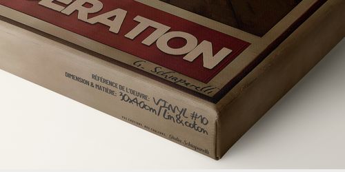 Véritable toile en lin et coton, prolongée par des bordures artistiques uniques, créant un effet immersif digne des toiles de galerie.