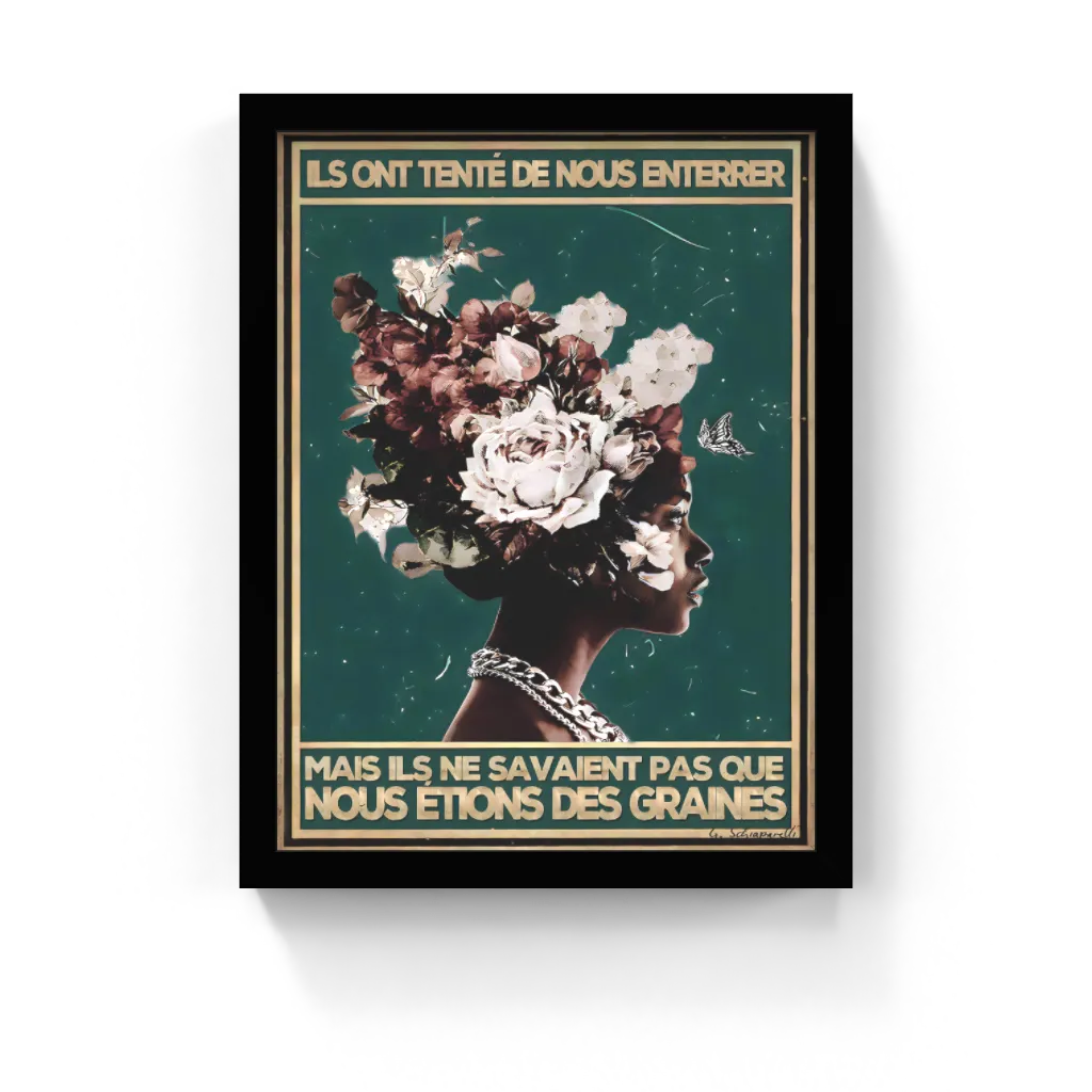 Véritable toile en lin et coton, prolongée par des bordures artistiques uniques, créant un effet immersif digne des toiles de galerie.