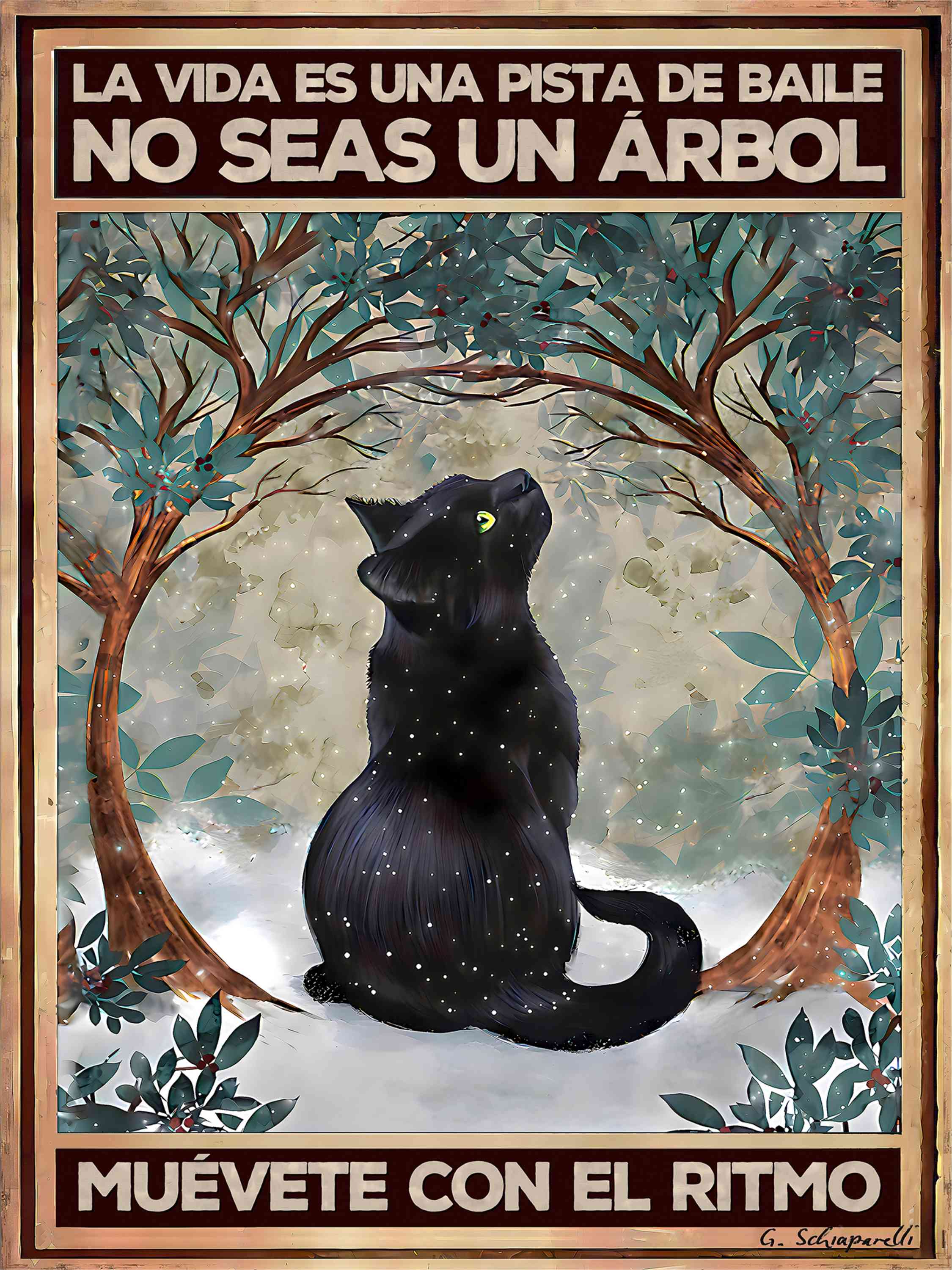 Esta cita, 'La vida es una pista de baile, no seas un árbol, baila al ritmo' nos recuerda no quedarnos parados ante los desafíos de la vida. Como en una pista de baile, a veces hay que seguir el ritmo, adaptarse y dejarse llevar por la música de la vida. Este lienzo simboliza la flexibilidad, la espontaneidad y la alegría de vivir.