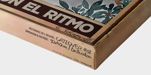 Véritable toile en lin et coton, prolongée par des bordures artistiques uniques, créant un effet immersif digne des toiles de galerie.