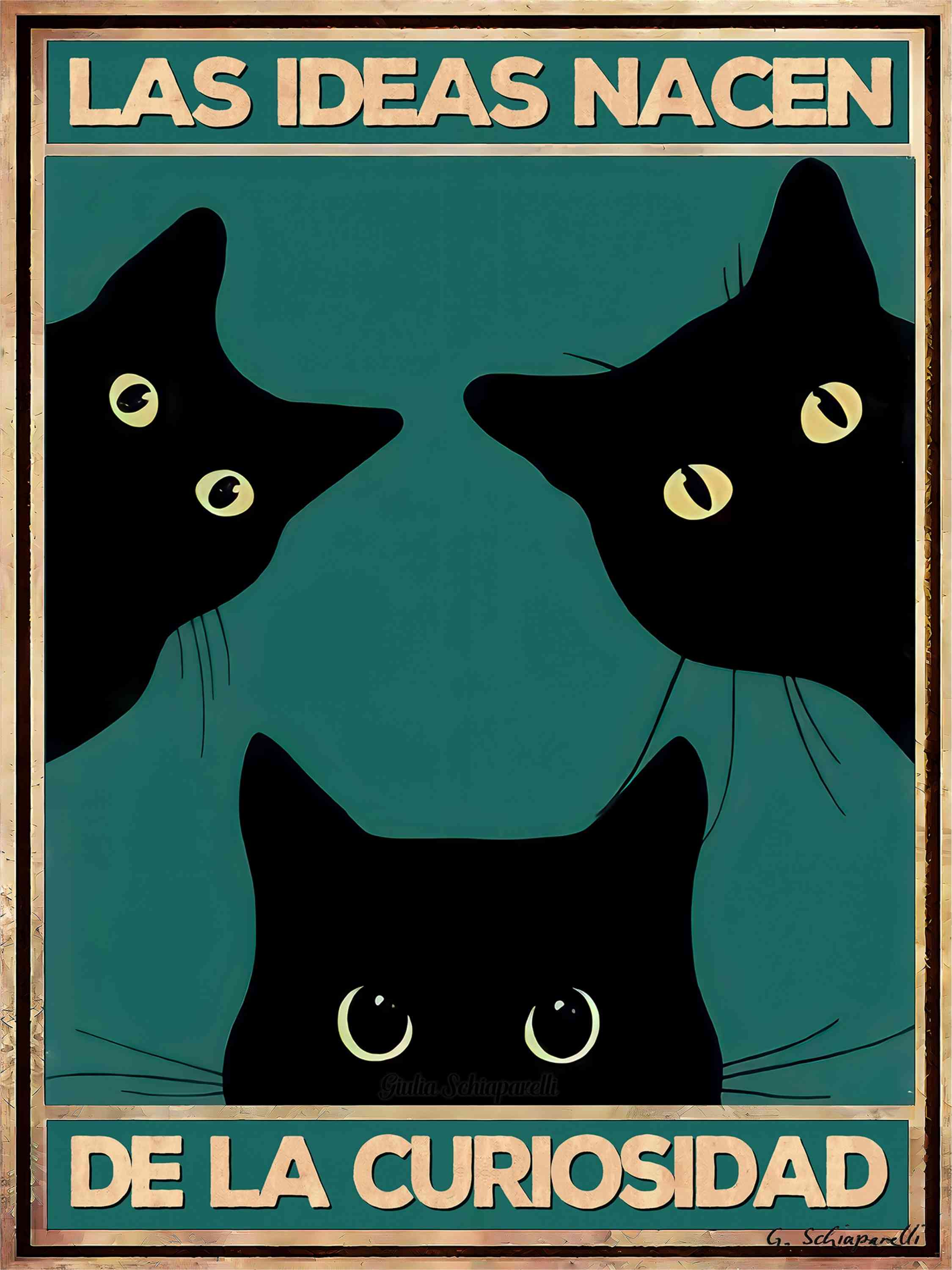 Esta cita, 'Las ideas surgen de la curiosidad', celebra el espíritu de exploración y apertura. La curiosidad es el motor de la exploración interior, una invitación a cuestionar lo ordinario y a desvelar los misterios del mundo. Como la mirada penetrante de un gato en busca de descubrimiento, la curiosidad nos empuja a ver más allá de lo evidente. Deja que este lienzo adorne tu espacio y te recuerde cada día nutrir tu mente con curiosidad y acoger la inspiración en todas sus formas.