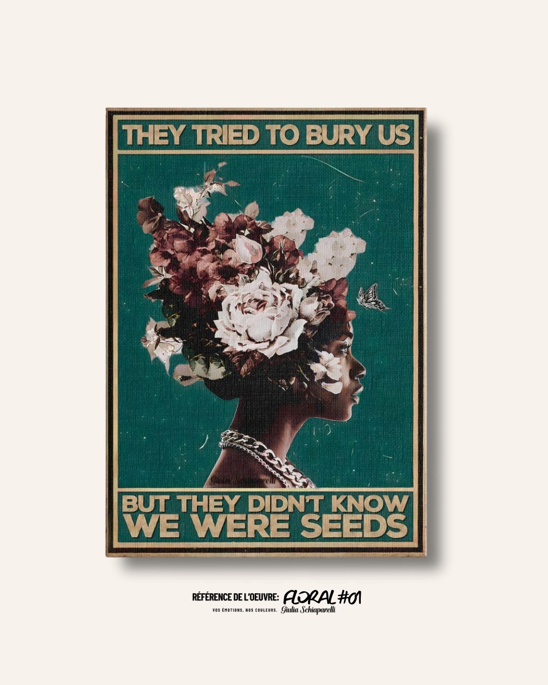 Véritable toile en lin et coton, prolongée par des bordures artistiques uniques, créant un effet immersif digne des toiles de galerie.