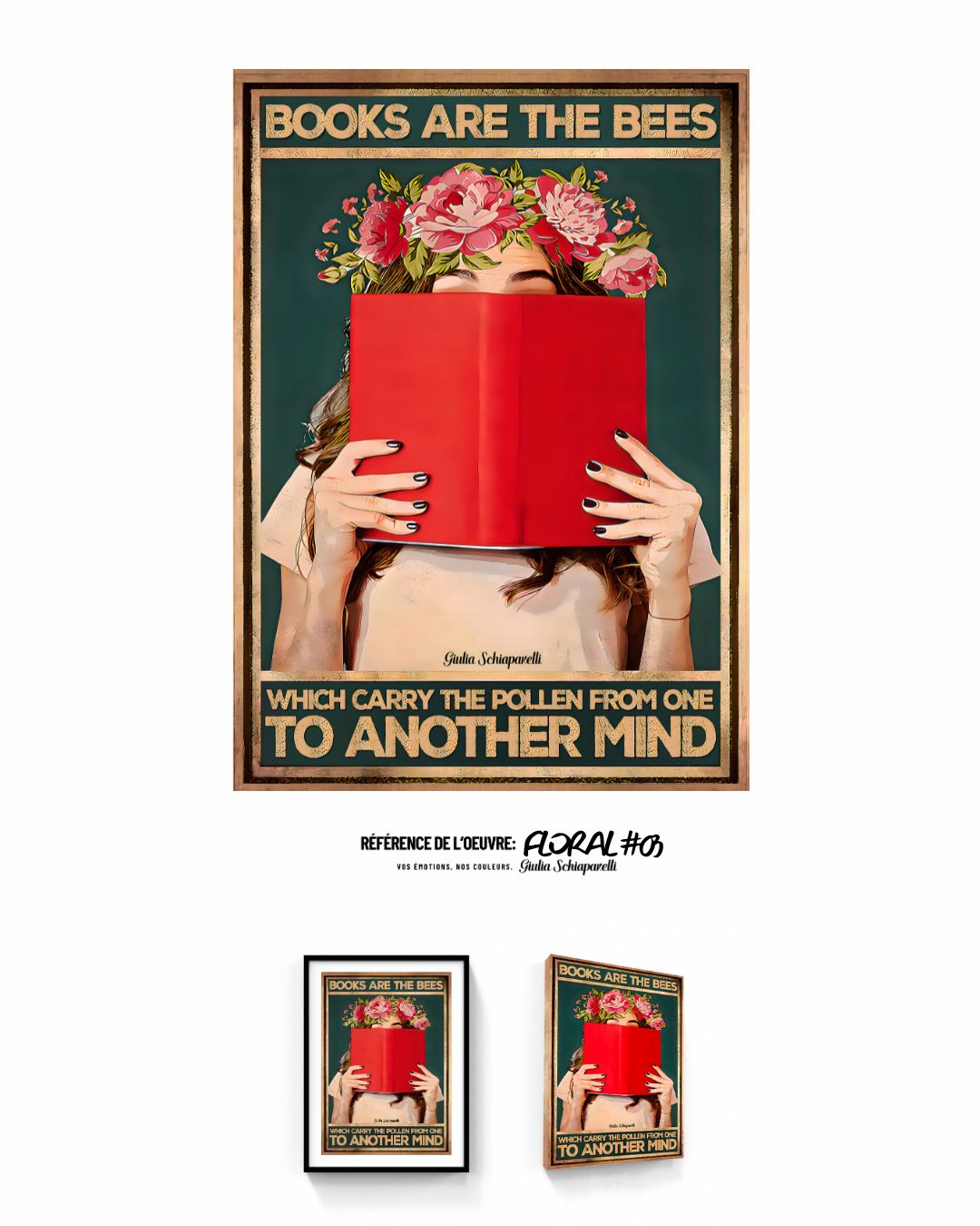 Esta cita, "Los libros son las abejas que transportan el polen de una mente a otra", encarna el poder del conocimiento compartido. Este lienzo te invita a explorar el vasto universo de las ideas, a sumergirte en las páginas que transportan la sabiduría de una mente a otra. Cuelga esta obra en tu casa para recordarte que cada libro es un puente hacia el descubrimiento y el enriquecimiento.