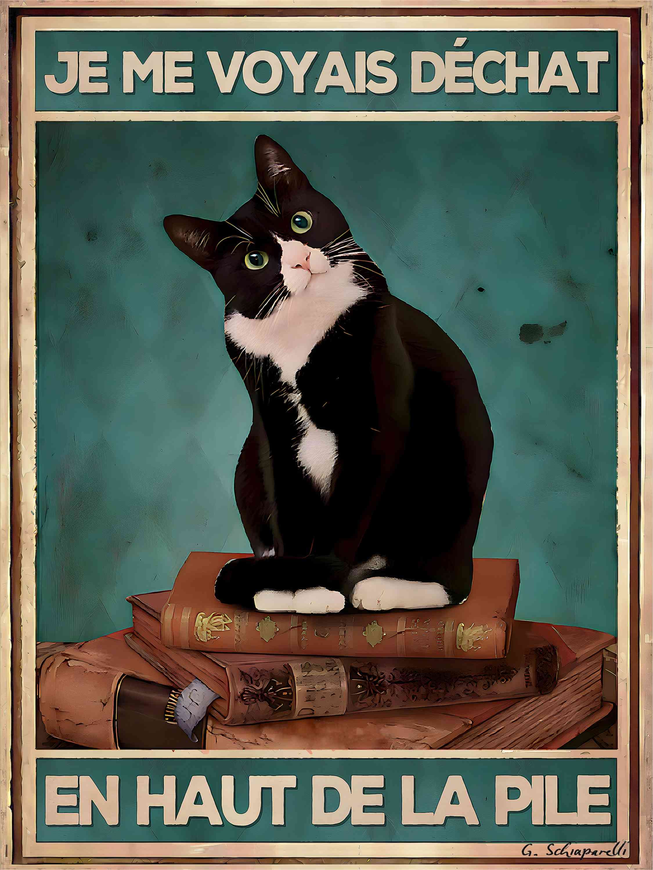 Esta pintura divertida e inspiradora hace eco de la famosa canción de Charles Aznavour, "Me veía ya en la cima del cartel", ¡pero con un toque felino y literario! Simbolizando los sueños y las ambiciones que todos tenemos de alcanzar nuestros propios objetivos, esta pintura nos recuerda perseguir nuestros sueños con determinación, incluso si eso significa tomar un camino inesperado o atípico.