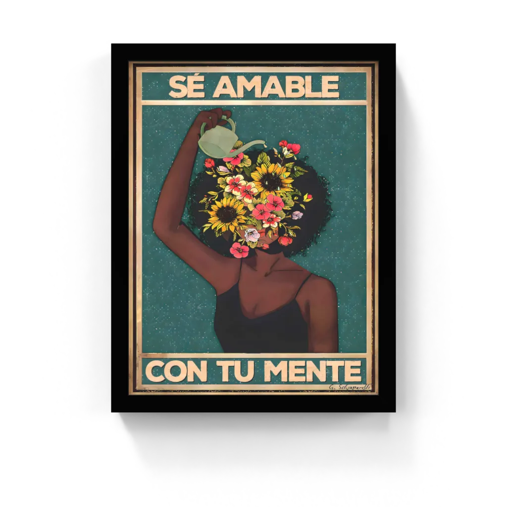 Esta cita, 'Sé amable con tu mente', nos recuerda que la autocompasión es la base de nuestro bienestar. Es esencial tratar nuestra mente con suavidad, al igual que cuidamos nuestro cuerpo. Tomarse el tiempo para escucharnos, acoger nuestros pensamientos sin juicio y cultivar la bondad hacia uno mismo, ese es el profundo mensaje de este lienzo. Deja que embellezca tu espacio e inspírate cada día a ser más indulgente contigo mismo, a calmar tu mente y a cultivar la paz interior.