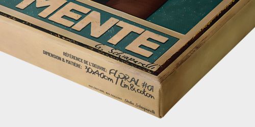 Véritable toile en lin et coton, prolongée par des bordures artistiques uniques, créant un effet immersif digne des toiles de galerie.