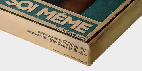 Véritable toile en lin et coton, prolongée par des bordures artistiques uniques, créant un effet immersif digne des toiles de galerie.