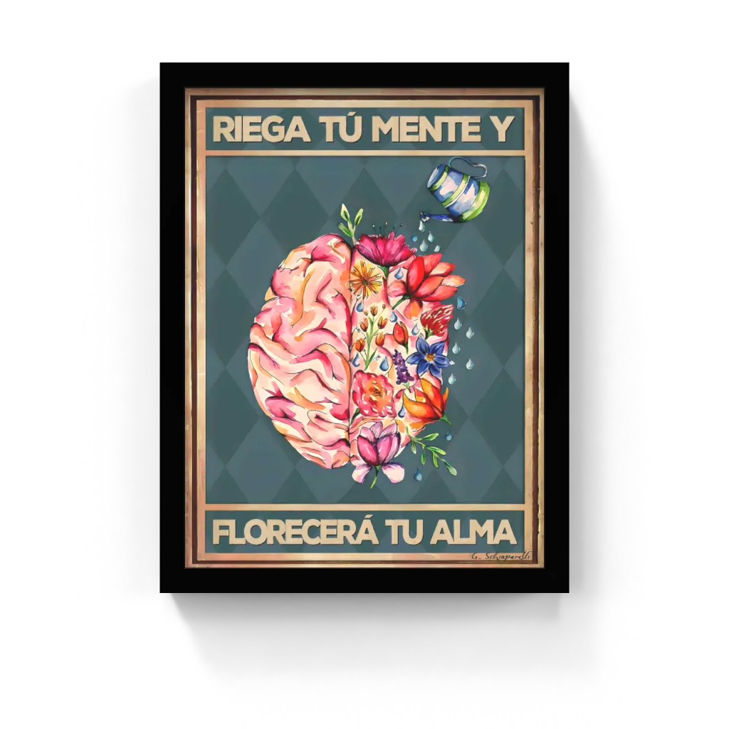 Esta cita, 'Riega tu mente y florecerá tu alma' evoca la poderosa noción de cultivar la mente para favorecer el florecimiento del alma. Al igual que se riega una planta para hacerla crecer, este lienzo te invita a nutrir tu mente con conocimientos, reflexión e inspiración. Recuerda que cada pensamiento, cada idea, es una gota de agua preciosa para tu alma.
