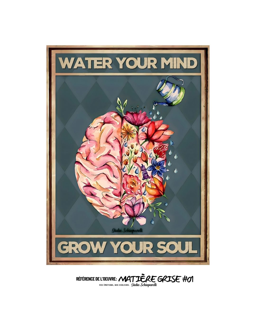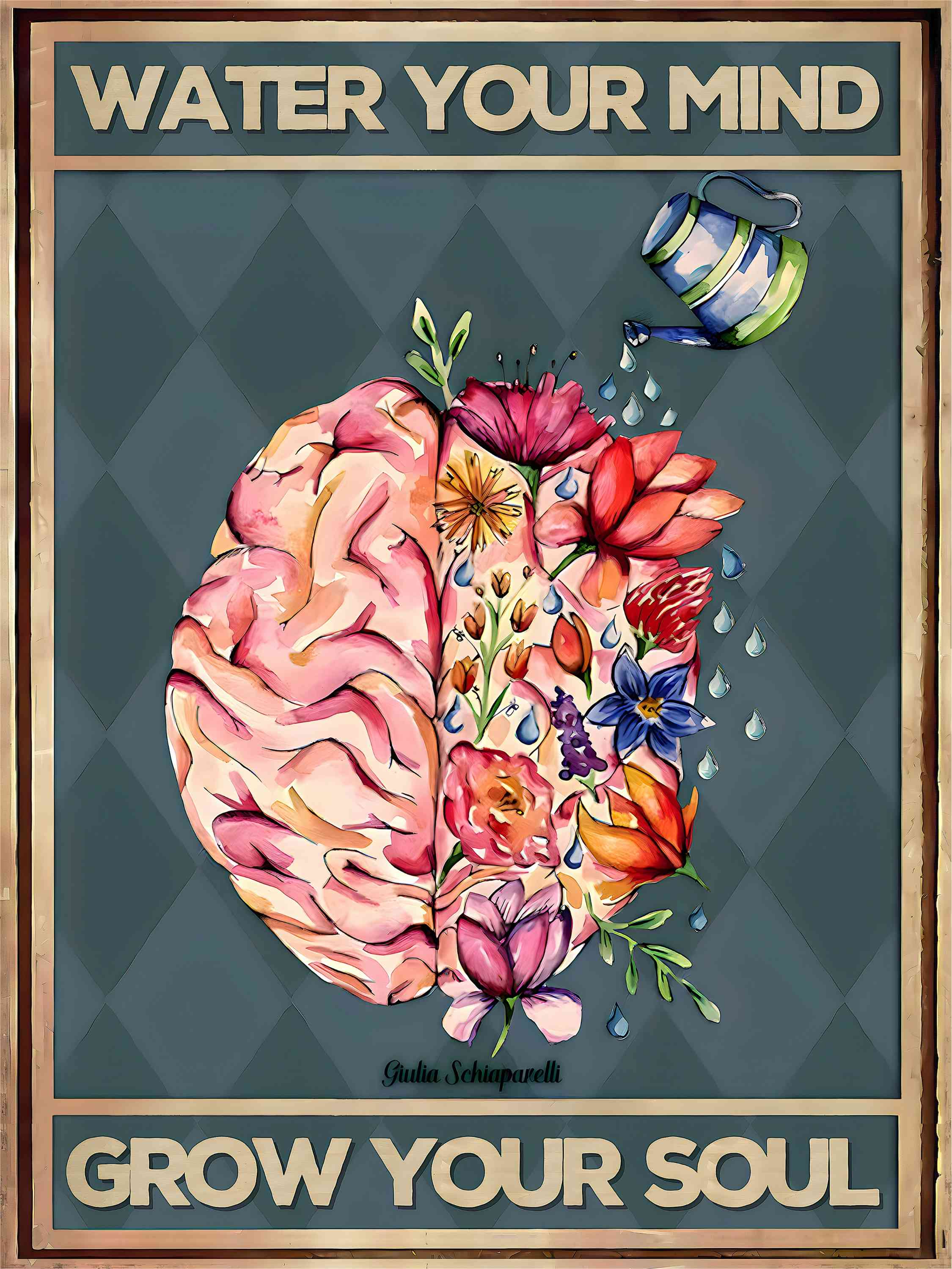 Esta cita, 'Riega tu mente, haz crecer tu alma' evoca la poderosa noción de cultivar la mente para favorecer el florecimiento del alma. Al igual que se riega una planta para que crezca, este lienzo te invita a nutrir tu mente con conocimientos, reflexión e inspiración. Recuerda que cada pensamiento, cada idea, es una gota de agua preciosa para tu alma.
