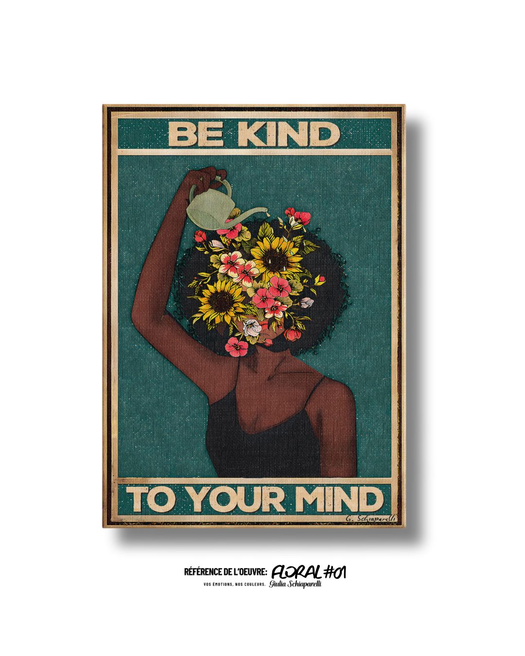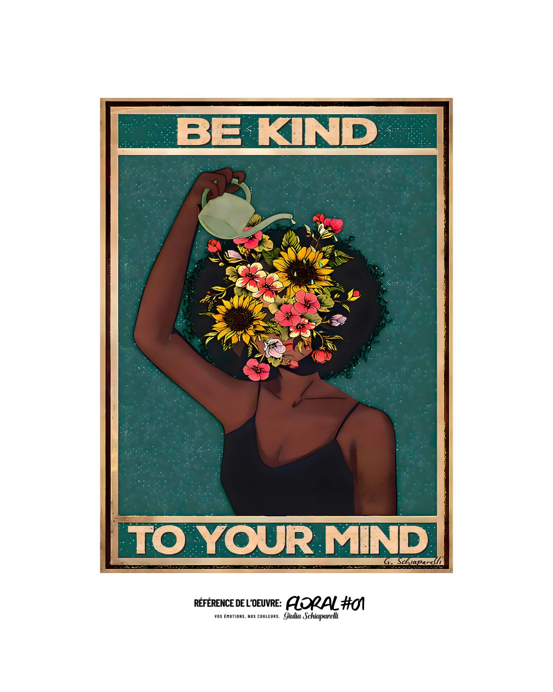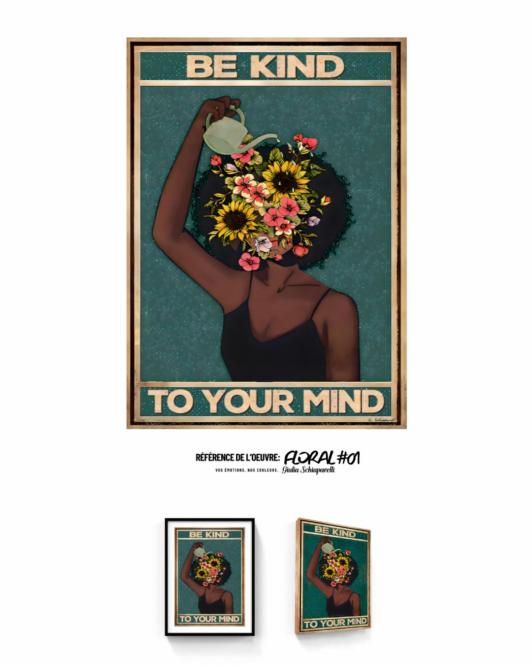 Esta cita, 'Sea amable con su mente', nos recuerda que la autocompasión es la base de nuestro bienestar. Es esencial tratar nuestra mente con suavidad, al igual que cuidamos nuestro cuerpo. Tomarse el tiempo para escucharse, acoger nuestros pensamientos sin juicio y cultivar la bondad hacia uno mismo, ese es el mensaje profundo de este lienzo. Deja que embellezca tu espacio e inspírate cada día para ser más indulgente contigo mismo, para calmar tu mente y cultivar la paz interior.