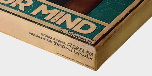 Véritable toile en lin et coton, prolongée par des bordures artistiques uniques, créant un effet immersif digne des toiles de galerie.