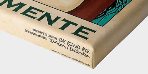 Véritable toile en lin et coton, prolongée par des bordures artistiques uniques, créant un effet immersif digne des toiles de galerie.
