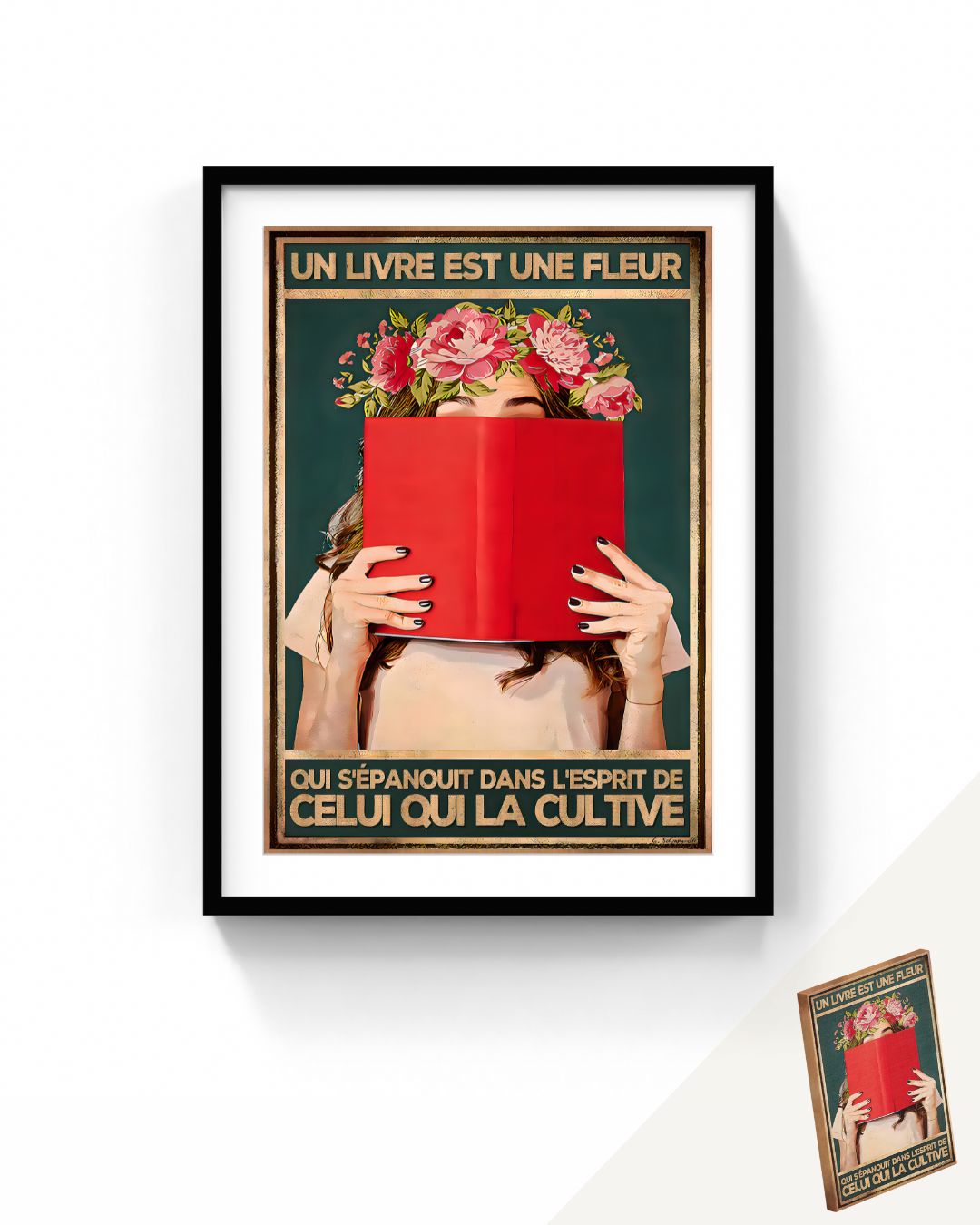 Cada página descubierta, cada historia es una semilla plantada en la mente del lector. Este lienzo simboliza la belleza intemporal y el florecimiento que proporciona la lectura. Al igual que una flor necesita atención y cuidado para florecer, nuestra mente necesita palabras, reflexiones y aventuras para crecer y florecer. Cuelga este lienzo para recordar la magia y el poder del quinto arte, la literatura, y cómo este arte puede iluminar y enriquecer nuestras vidas.